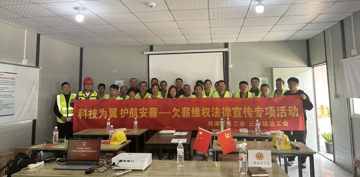 2024年4月2日下午,以“科技為翼,護(hù)航安薪”為主題的欠薪維權(quán)法律宣傳專項(xiàng)活動(dòng)在寶恒知谷新材料產(chǎn)業(yè)園區(qū)及基礎(chǔ)設(shè)施建設(shè)項(xiàng)目部順利召開,西湖區(qū)總工會(huì)四級(jí)調(diào)研員張紅民、三墩鎮(zhèn)總工會(huì)副主席朱舜蕓、寶恒建設(shè)工會(huì)主席閭仲金出席了本次活動(dòng)?;顒?dòng)得到了西湖區(qū)總工會(huì)和三墩鎮(zhèn)總工會(huì)的全力支持。